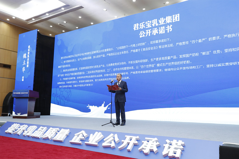 10月16日,由國家市場監(jiān)督管理總局主辦的“提升乳品質(zhì)量 企業(yè)公開承諾"活動(dòng)在京舉辦。市場監(jiān)管總局黨組書記、局長肖亞慶出席活動(dòng)并發(fā)表講話,總局黨組成員、副局長孫梅君主持活動(dòng)。君樂寶乳業(yè)集團(tuán)總裁魏立華出席活動(dòng),代表君樂寶向社會做出鄭重承諾:以恪守質(zhì)量安全至上為原則,嚴(yán)格落實(shí)企業(yè)主體責(zé)任,嚴(yán)格貫徹“四個(gè)最嚴(yán)"的要求,推動(dòng)乳業(yè)高質(zhì)量發(fā)展,生產(chǎn)讓消費(fèi)者滿意、放心的好產(chǎn)品,不斷提升國產(chǎn)奶粉品牌聲譽(yù)。